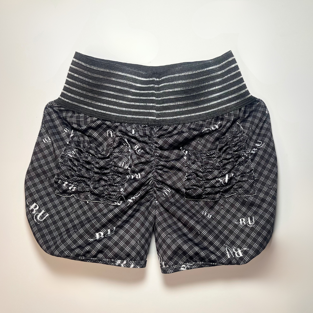 Turn heads with these ultra-flattering shorts featuring ruffled back pockets and a scrunched center seam designed to enhance and lift the booty. The soft, stretchy fabric hugs your curves while offering comfort and flexibility. Perfect for gym sessions or everyday wear. One size fits most (XS–L).